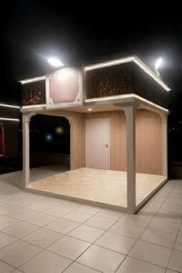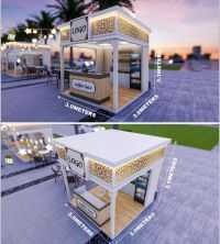 Commercial kiosk for cafe and restaurant almost like new. 3 by 3 with golden engraving design and lights. isolation from the top. The kiosk is dismantled and ready to be fixed. Great Price of 8800 and new cost around