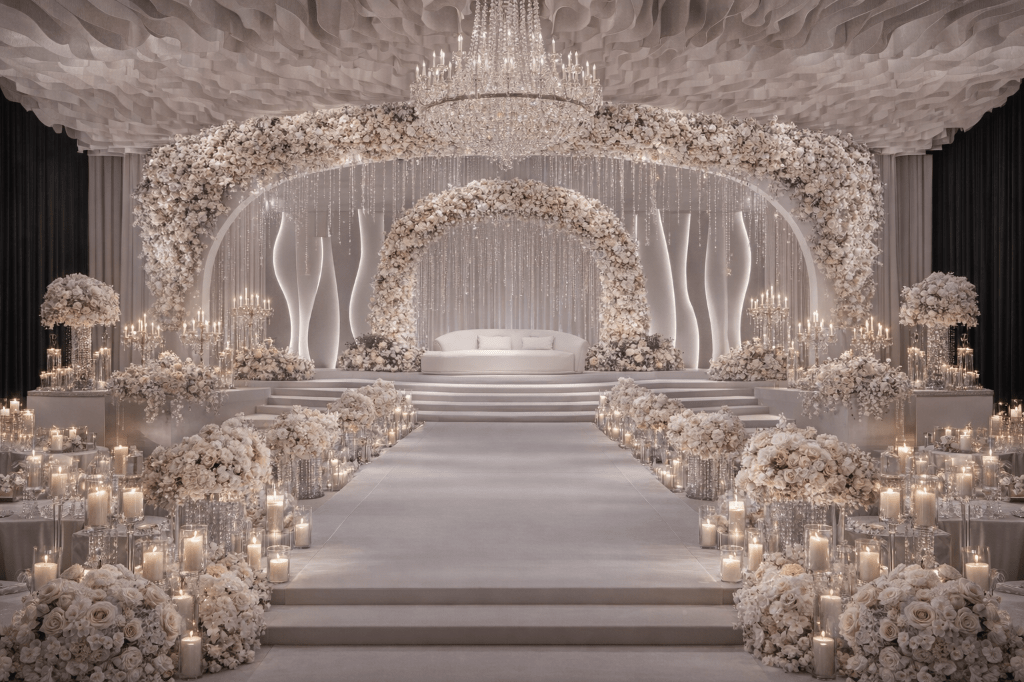 تصميم وتنفيذ أعراس وكوش وقاعات المناسبات وحفلات. تصميم ثري دي واقعي مع فيديو حركة داخل القاعة. وتنفيذ للكوشة مع التعليقات والستائر وأنظمة الاضاءة والطاولات والكراسي. تنفيذ الكوش داخل القاعات أو المجالس المنزلية أو المساحات الخارجية