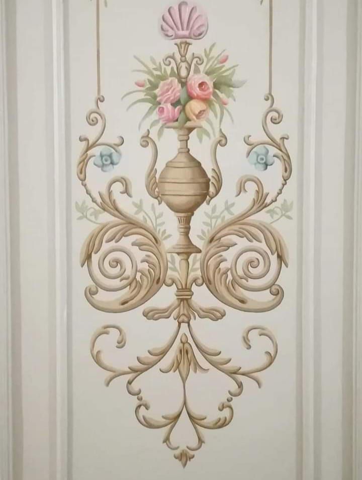 A mural artist specializing in relief painting, veining, antiquing, and marbleizing surfaces, landscapes, and portraits of public figures painting large - scale murals
