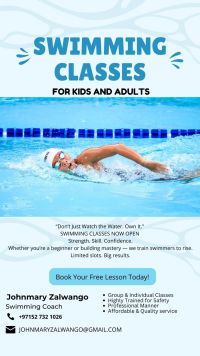 Am lady swimming coach I give ladies, kids and private classes I have a good experience if you want to learn please contact
