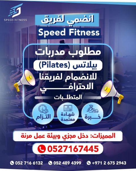 مطلوب مدربة بيلاتس ولياقة بدنية لجيم في أبوظبي الروضة شارع النزهة فتنس لديها خبرة راتب ثابت وعمولة دوام كامل