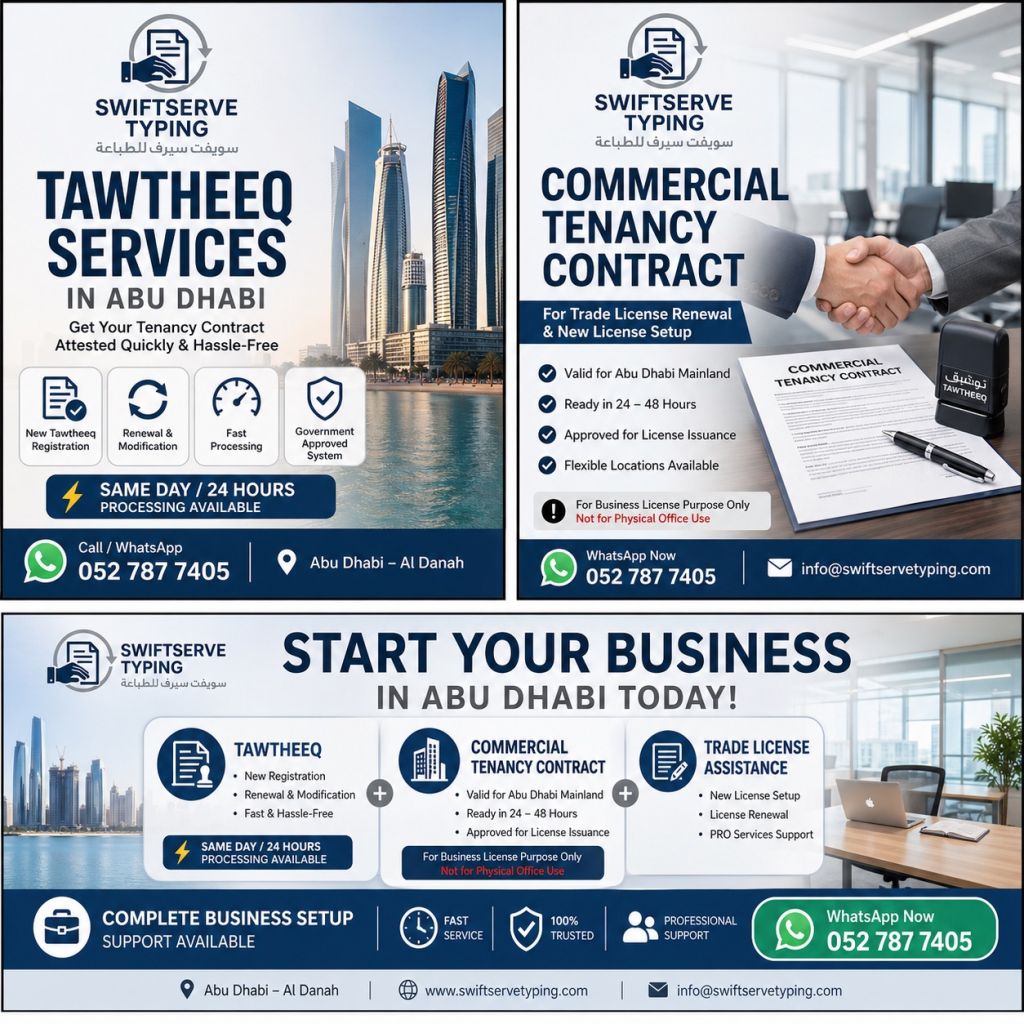 We provide Registration, Tenancy Contract for Trade License Renewal, Same Day issue Contract within 3 - 4 hours