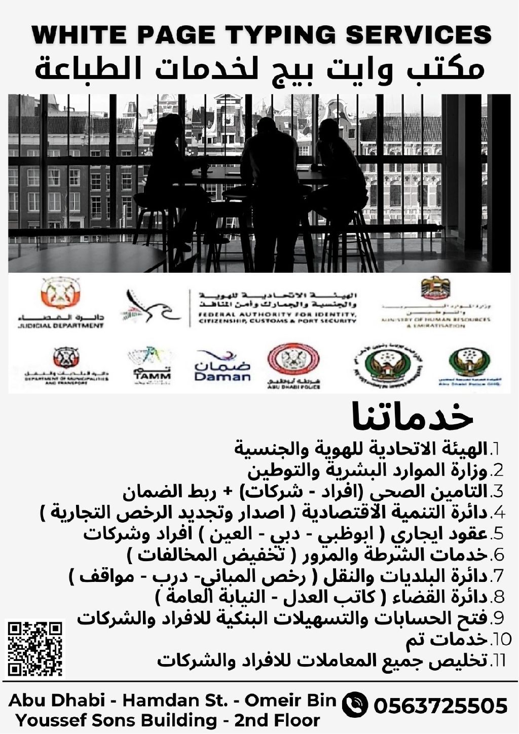 يقدم مكتب وايت بيج لتخليص المعاملات تخليص جميع المعاملات الحكومية وفتح الحسابات والتسهيلات البنكية للأفراد والشركات، وعقود أيجاري لتجديد الرخص، والتأمين الصحي لكبار السن والمستثمرين بأسعار مناسبة