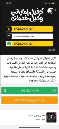 For those who want an Emirati sponsor + a service agent for all commercial licenses in the UAE, an Emirati citizen for companies and institutions in all their activities, suitable prices according to the type of company and activity with an annual guarantee (individual institution - Industrial license - professional license - limited liability, please contact