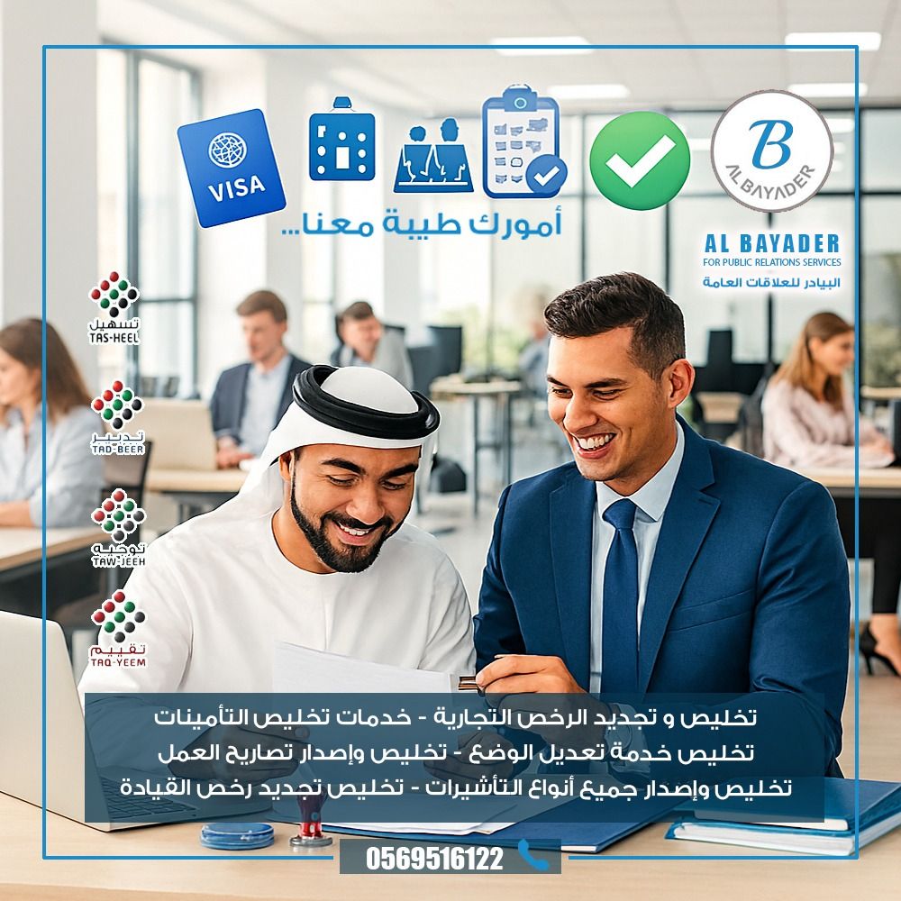 مع البيادر امورك طيبة انجاز جميع معاملاتك من صميم عملنا نقوم بانجاز جميع معاملاتك الحكومية في يوم واحد عمل تواصلكم هدفنا