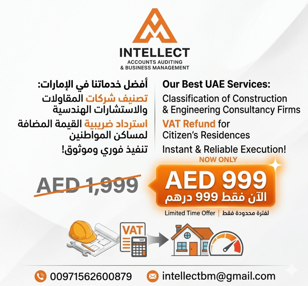 INTELLECT Complete professional solutions for your business and residence in the UAE at exceptional prices OFFERS Valid FOR A Very LIMITED TIME Commercial Lease Agreements for licenses) AED2899 2299 Business Setup & Trade License Renewal ICV & ADNOC Supplier Registration AED6899 3299 Construction & Engineering Consultancy Classification VAT Refund for citizens'residences) AED