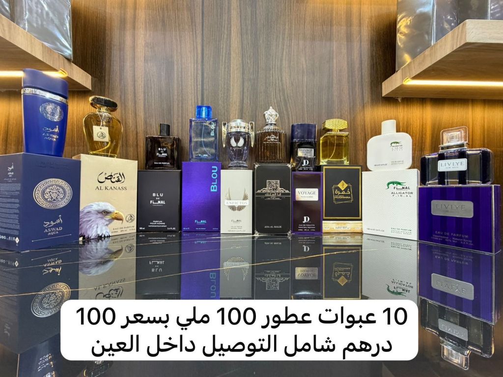 10 عبوات عطور 100 ملي بسعر 100 درهم شامل التوصيل داخل العين للتواصل