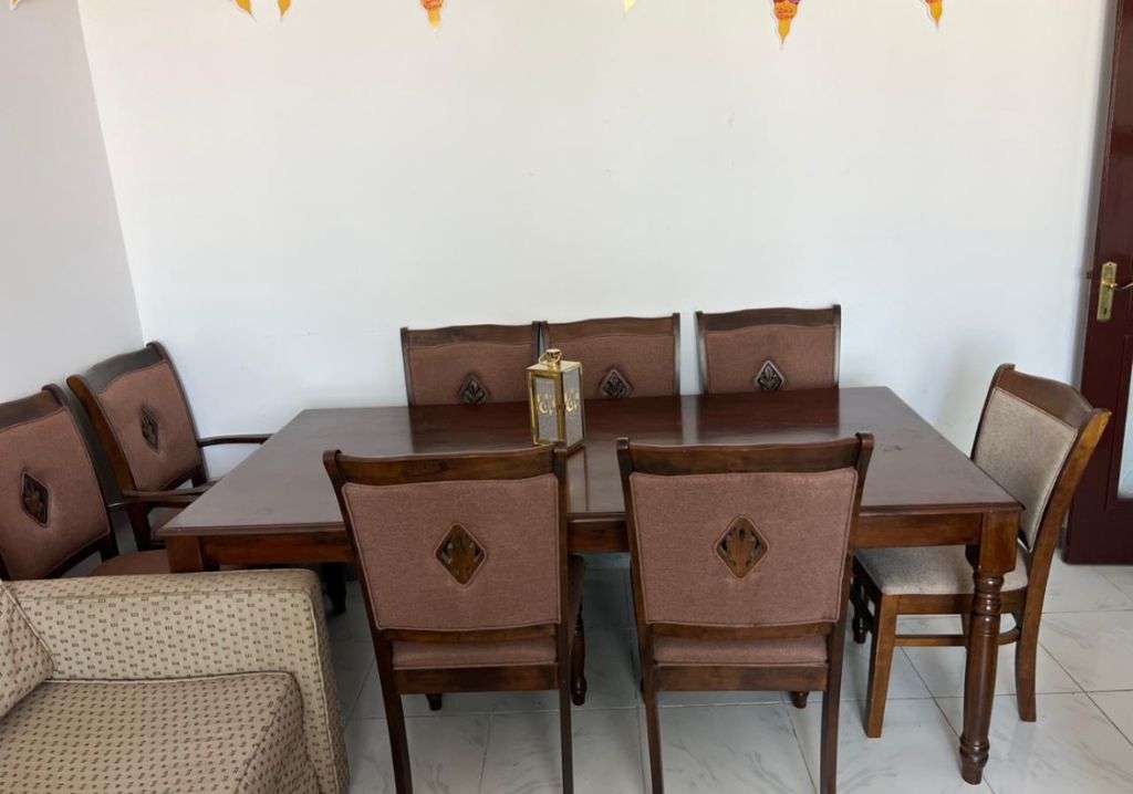 للبيع طقم انتريه اثنين صوفا + كرسي خشب محلي أصلي 250 درهم وطاولة طعام 8 كرسي خشب أصلي سعر الطاولة مع الكراسي 500