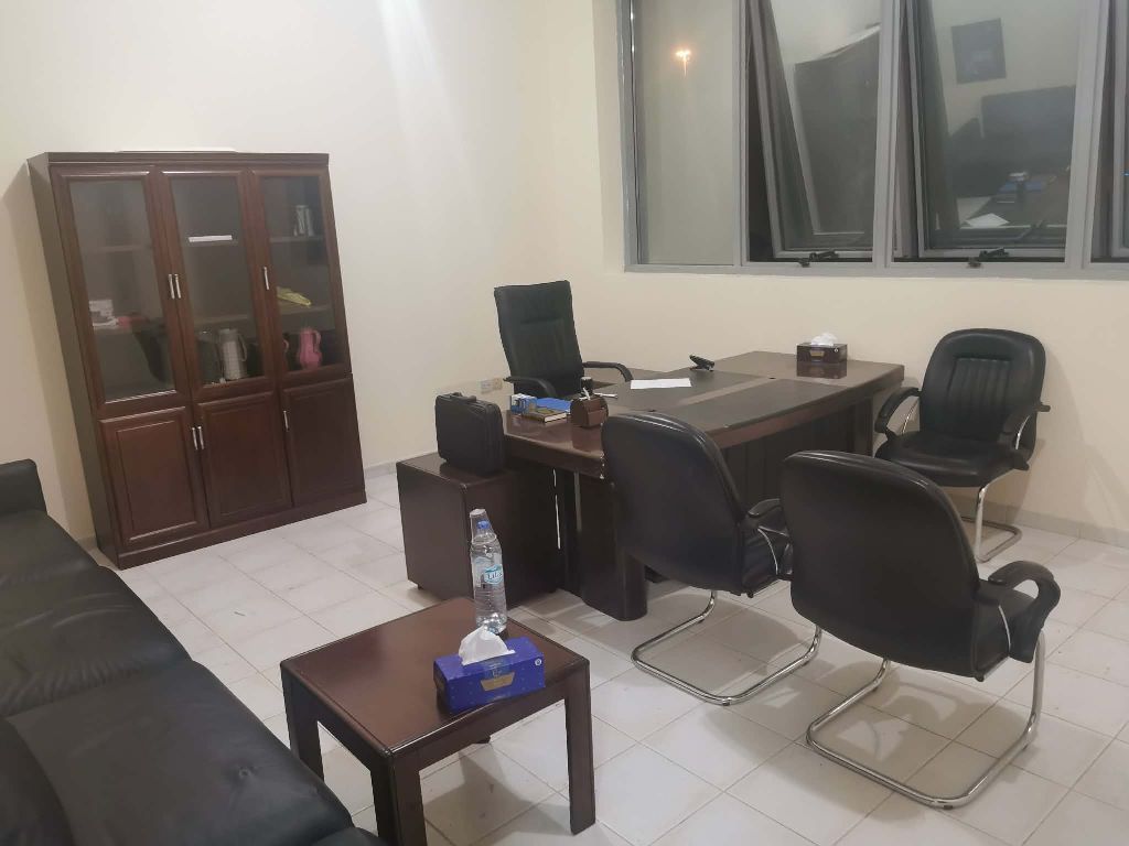 للبيع أدوات مكتب بحالة ممتازة كما بالصورة مكتب كبير، 4 كراسي، طرابيزه، انتريه جلد، دولاب البيع بغرض النقل