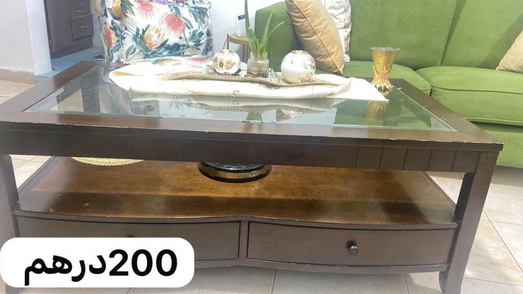 طاولة طعام 6 كراسي وطاولة قهوة حجمها وسط