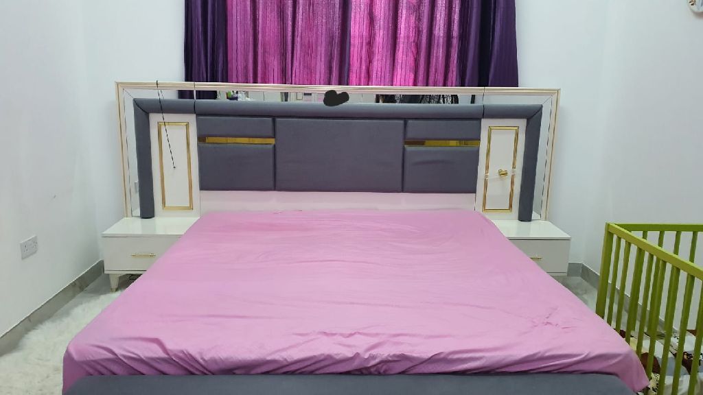 سرير كبير للبيع بحالة ممتازة بسعر 1200 درهم مع جوارير جانبيه من تحت مجال للتخزين شبك حديد