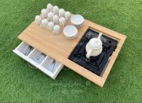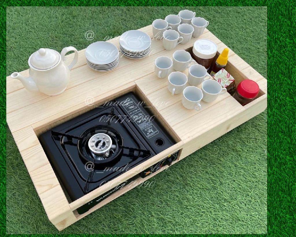 طاولة تخيم خارجية متكاملة - عملية وفخمة استمتع بتجربة تخيم مريحة ومرتبة مع هذه الطاولة المصممة خصيصا للبر والرحلات، تجمع كل احتياجاتك في قطعة واحدة. تصميم خشبي قوي مناسب للاستخدام الخارجي موقد غاز مدمج لتحضير الشاي والقهوة مساحات مخصصة للفناجين والصحون درج سفلي منظم للأدوات والملاعق مثالية للتخيم، البر، العزب، الرحلات والاستراحات عملية موفرة للمساحة تضيف لمسة فخ