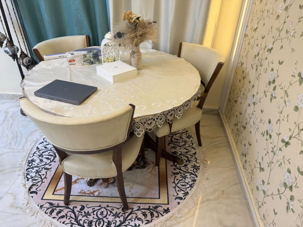 طاولة للبيع مع 4 كراسي نظيفة موجودة في الشوامخ قرب قاعة الأرجوانه