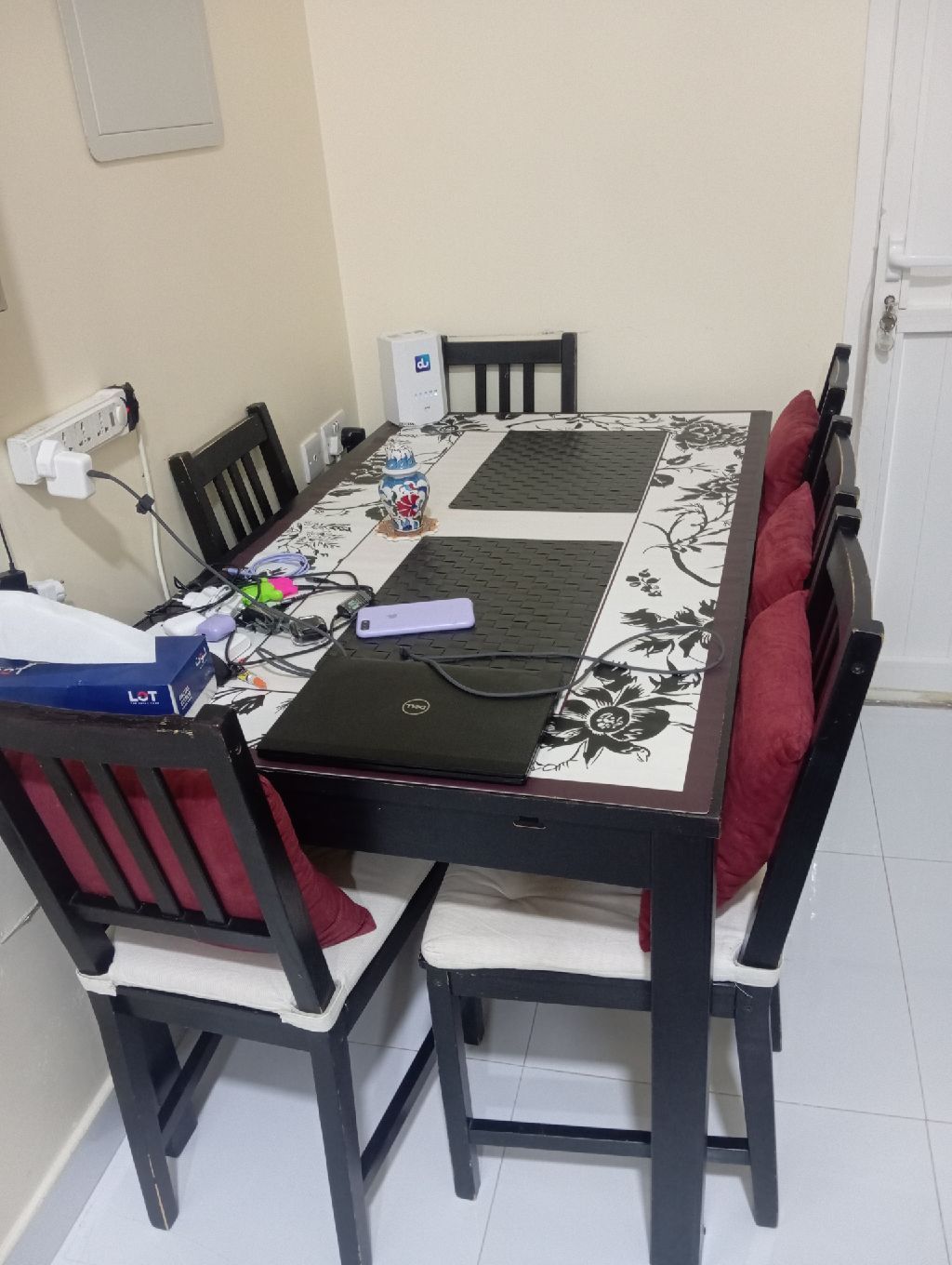 طاولة سفرة شبه جديدة مع ست كراسي فقط 400 درهم