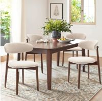 طقم كراسي طعام مكون من قطعتين كراسي جانبية عصرية للمطبخ منجدة بالقماش، كرسي طعام ريفي مع مساند للقدمين، بيج سعر القطعة الواحدة 245 درهما اماراتيا