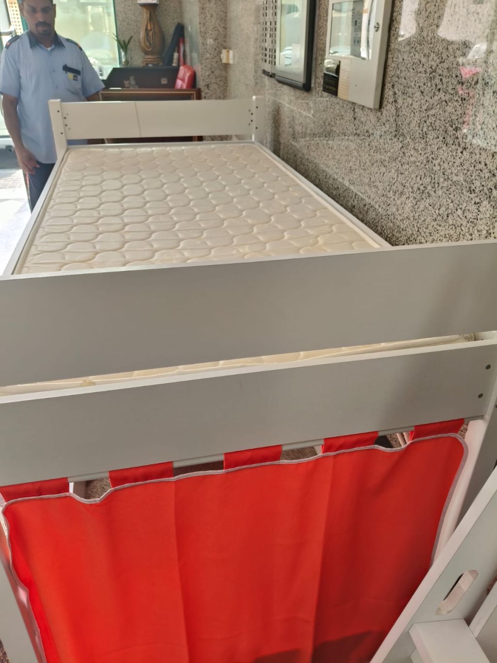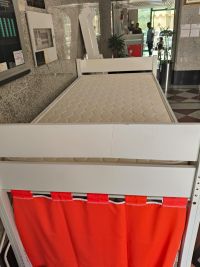 سرير اطفال طابق واحد مع مرتبه وستائر واستعمال نظيف جدا معه كل الأغراض مقاس 100 / 200