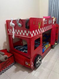سرير اطفال عدد 2 على شكل سيارة مع خزانه شبه جديدة، استعمال خفيف، سعر 1200 درهم