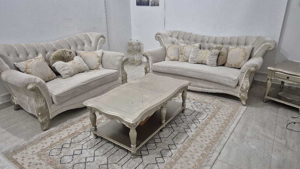 طقم كنب كلاسيك 7 أشخاص مع طاولتين بحالة جيدة مجانا. التواصل برسالة واتساب فقط يرجى عدم الاتصال. سيتم الرد بعد الواحدة ظهرا