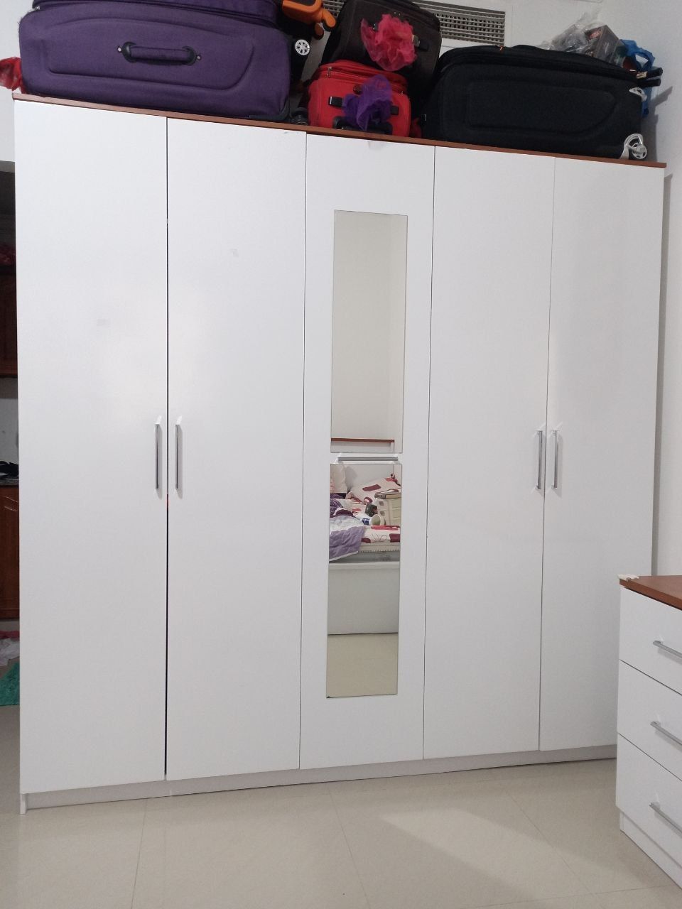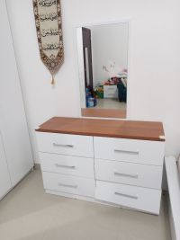 غرفة نوم قياس كينغ مستعملة للبيع بداعي السفر وبسعر مغري 4000 درهم - 5 قطع وفرشة - السرير 190*220*110 سم - الخزانة 55*220*220 - الفرشة 180*210*30 - المرآة والد روج 120*40*175 - كومدينة ين 55*40*50