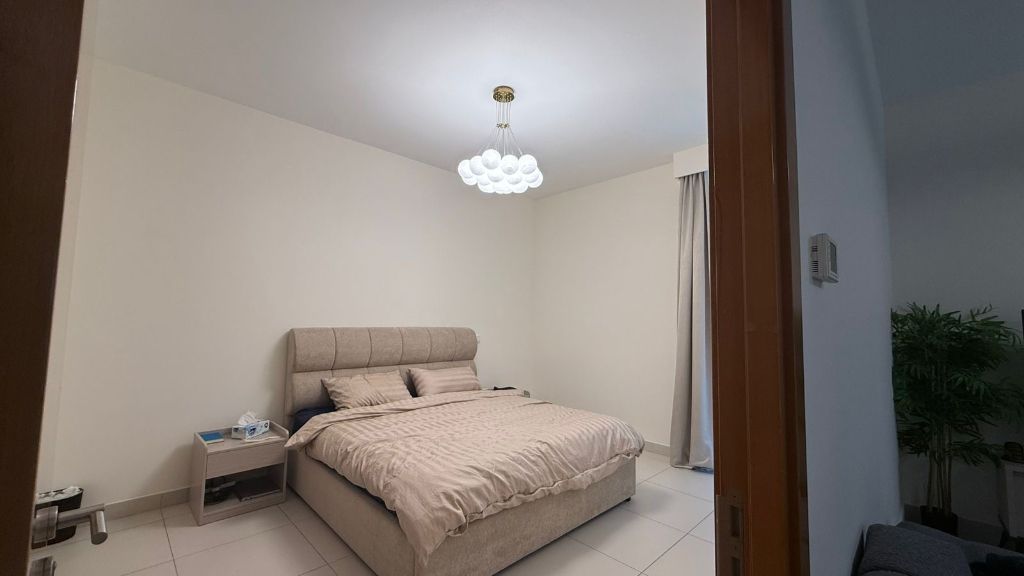 سرير حجم كبير بحالة ممتازة لون بيج مع طاولات جانبيه 600 درهم