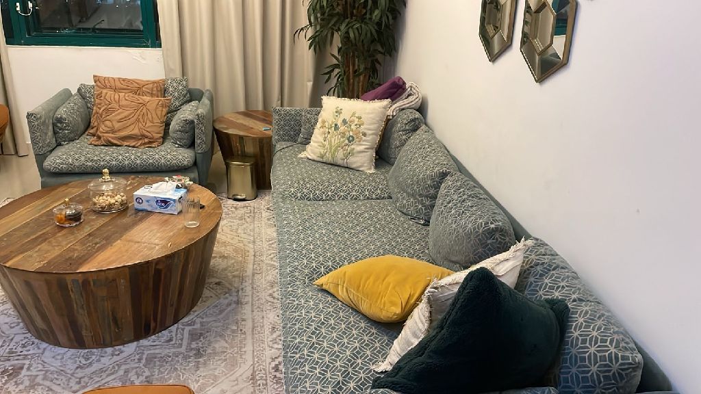 طقم كنب للبيع استخدام سنة واحدة وبحالة جيدة جدا من ايكيا اللون الأصلي سادة رمادي بترولي واللي بالصورة كفرات بتقدروا تشيلواهم أو تخلوه 250 درهم