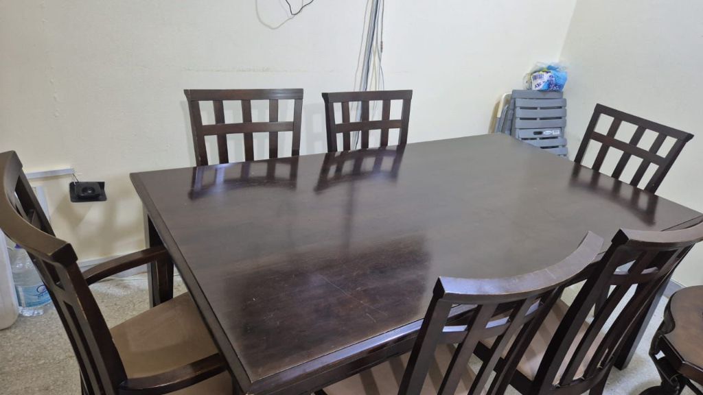 Wood dining table for sale (6 persons) in a good condition selling for traveling purpose AED300