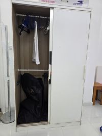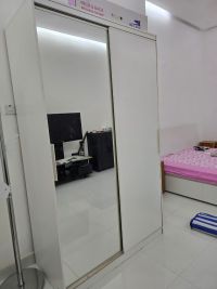 White Ikea Cupboard with Sliding Doors. Ample of storage and hanging space. Owner leaving the country. Located in Shakhbout City