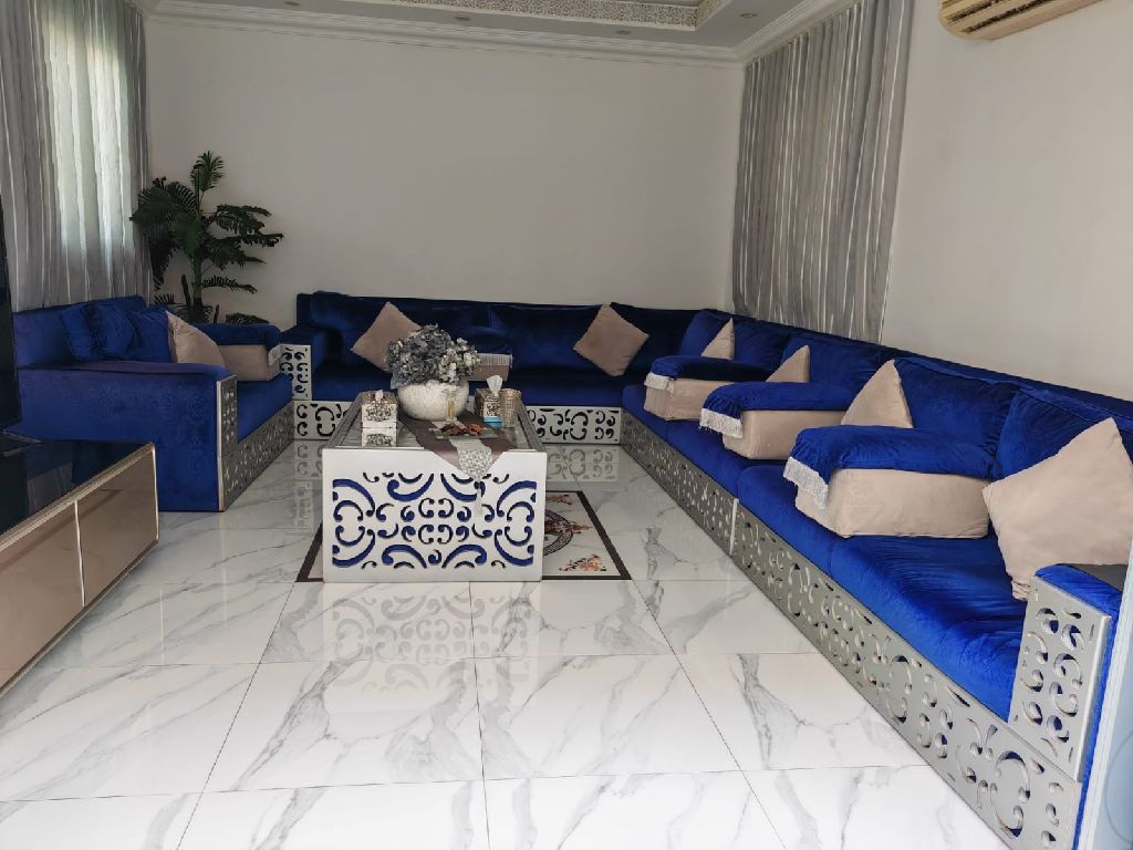Moroccan - style seating set for sale. Clean, only a year and a half old, barely used. Selling due to redecorating. For those interested, please contact me the price is 2500 dirhams