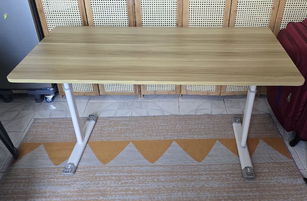 ترابيزة مكتب عملية بحالة ممتازة، يمكن التحكم في ارتفاعها وانخفاضها يدويا عن طريق ذراع جانبي. مناسبة للعمل والمذاكرة وتصلح للاستخدام جلوسا أو وقوفا. المقاس التقريبي 140*70 سم، والاستلام من المكان (لا يوجد توصيل)
