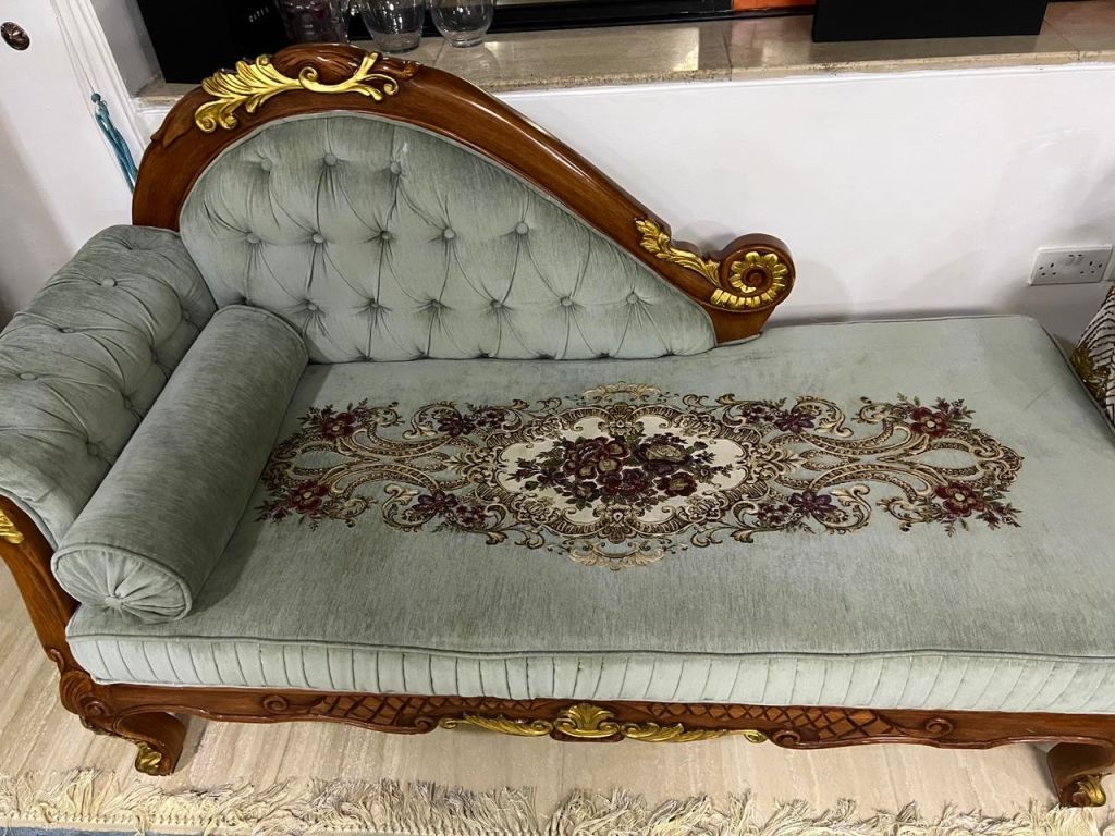 I am selling three single - seater sofas along with one beautifully hand - carved solid teak wood sofa. All items are clean, well maintained, and in very good condition. Reason for selling Moving out of the UAE. Price Reasonable and negotiable. Pickup Buyer to arrange pickup. Location Abu Dhabi, Hamdan bin mohamed street