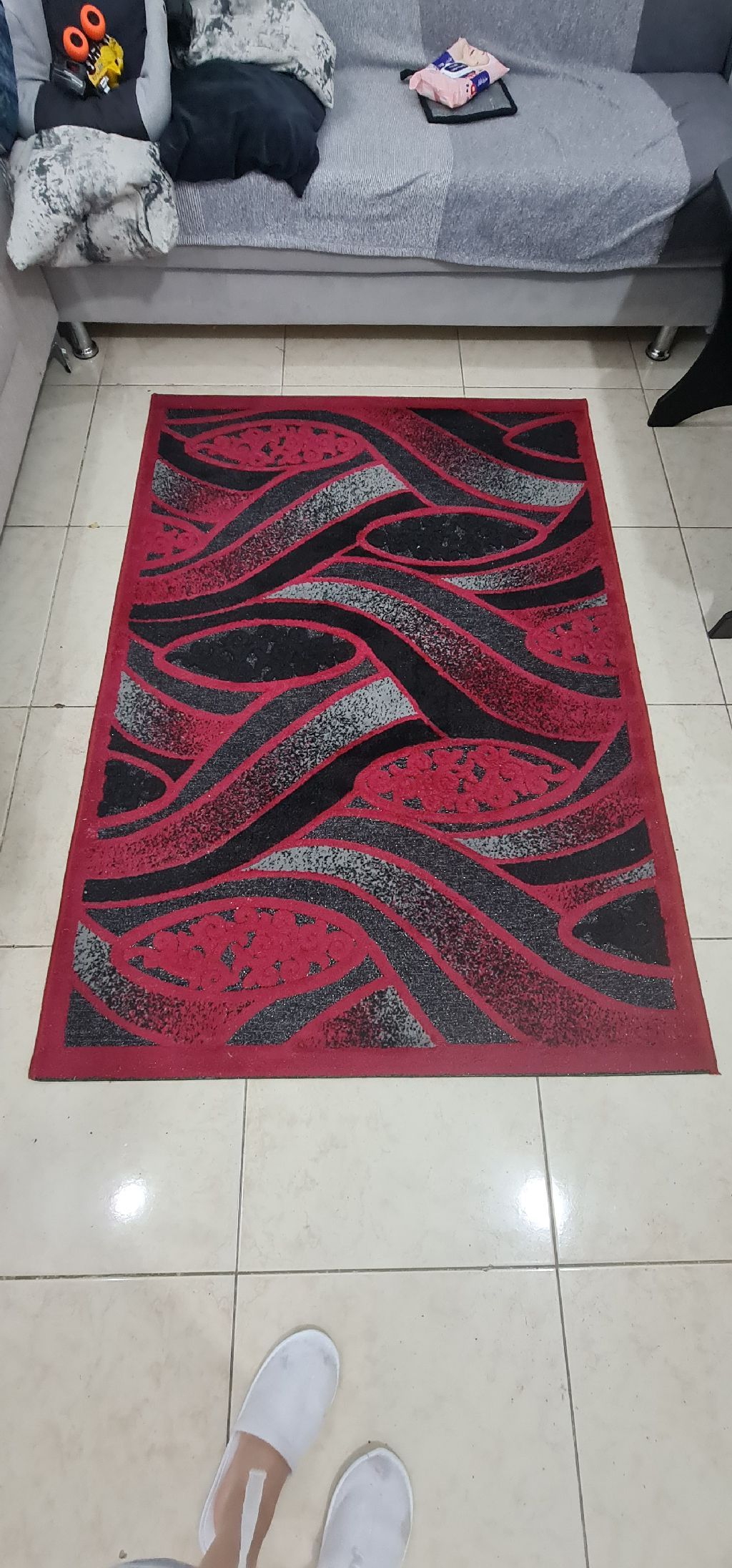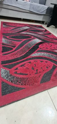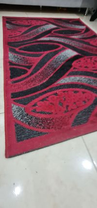 Thick carpets in red, black, and silver for sale. Price 50 dirhams