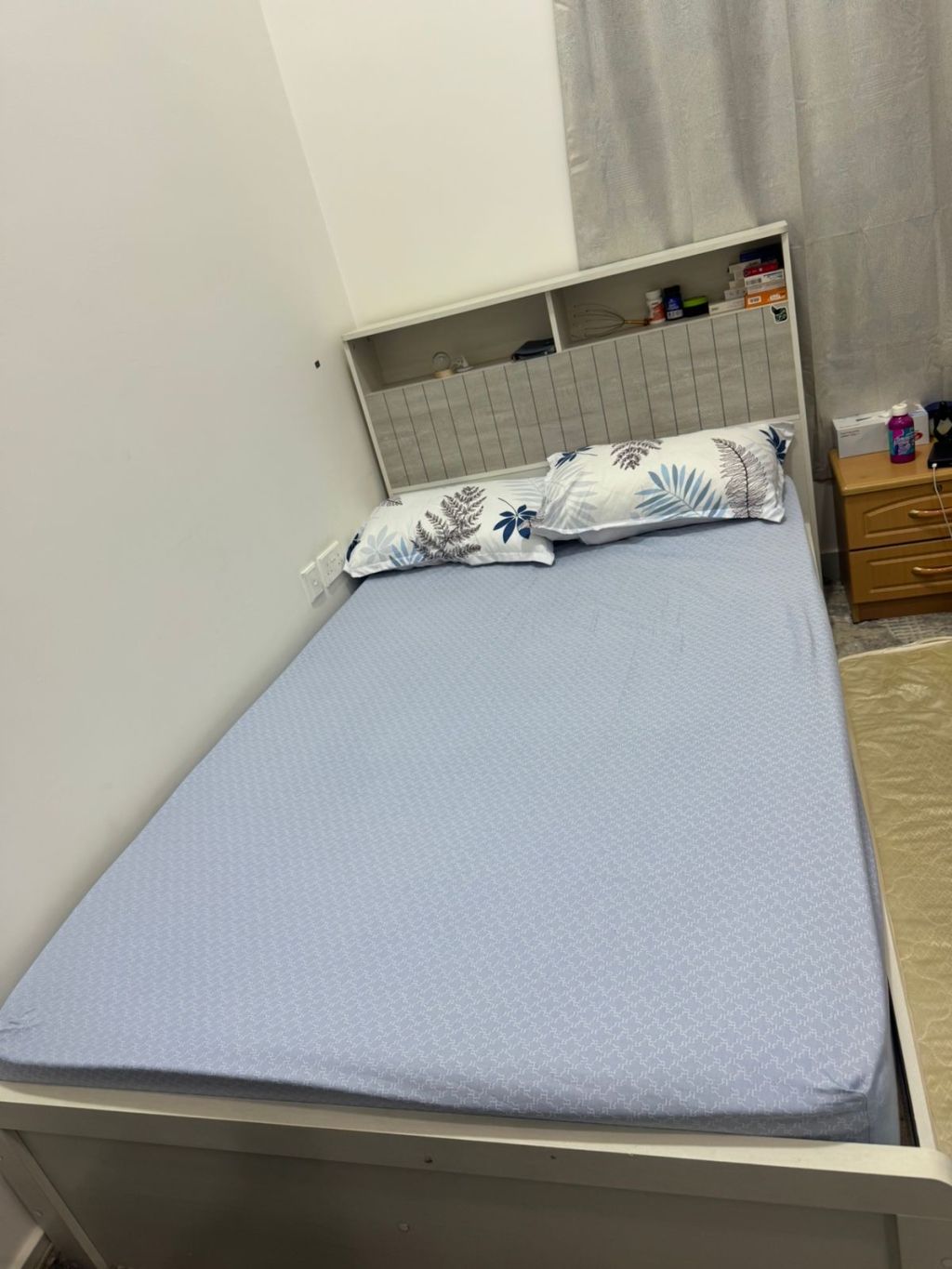 سرير queen size من هوم بوكس مع فرشة 25 cm، بحالة ممتازة. السعر 300، التواصل