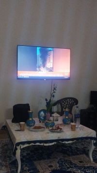 للبيع عفش بيت كامل طقم كنب مع طاولة وشاشة صغيرة 32 بوصة وسرير وخزانة وغسالة حوضين جديدة في بني ياس