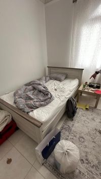 A bed with a mattress, size 120*200, is available in excellent condition, lightly used, for sale at a reasonable price. Located in Baniyas. Contact via