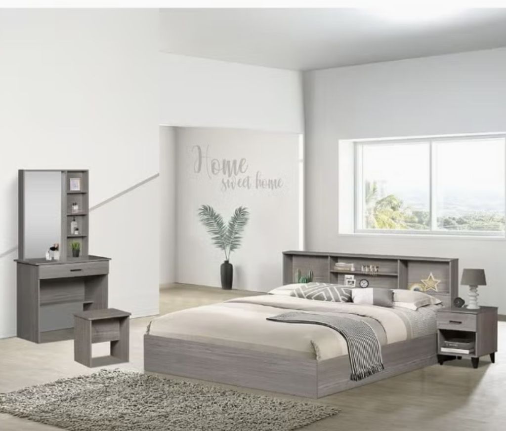 Hello, A bedroom set for sale, used for only one month and in excellent condition. It consists of 4 pieces a bed, a bedside table with a drawer, a chair, and a dressing table. Price AED1100