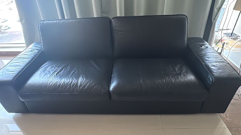 Luxurious leather sofa from Ikea, original purchase price AED4500, for sale for AED500 in Abu Dhabi, Shawamekh. Slightly negotiable for serious buyers