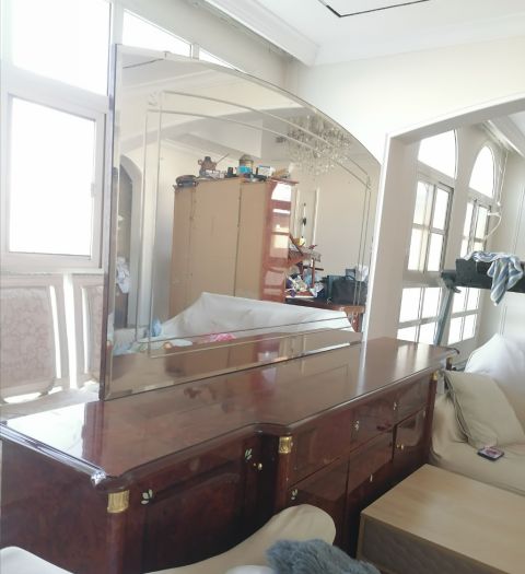 بيع قطع أثاث كنب نظيف استخدام خفيف مع طاولة رخام وسطية، طاولة طعام 14 كرسي مع بوفيه ومكتبة صحون. البيع على حالها، لأعلى سعر. والنقل على المشتري