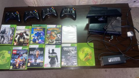 Xbox للبيع ب أربع أيادي تحكم وشاحن وتسع ألعاب والكاميرا الأصلية الى تجي مع الجهاز بسعر خيالي (330 درهم)