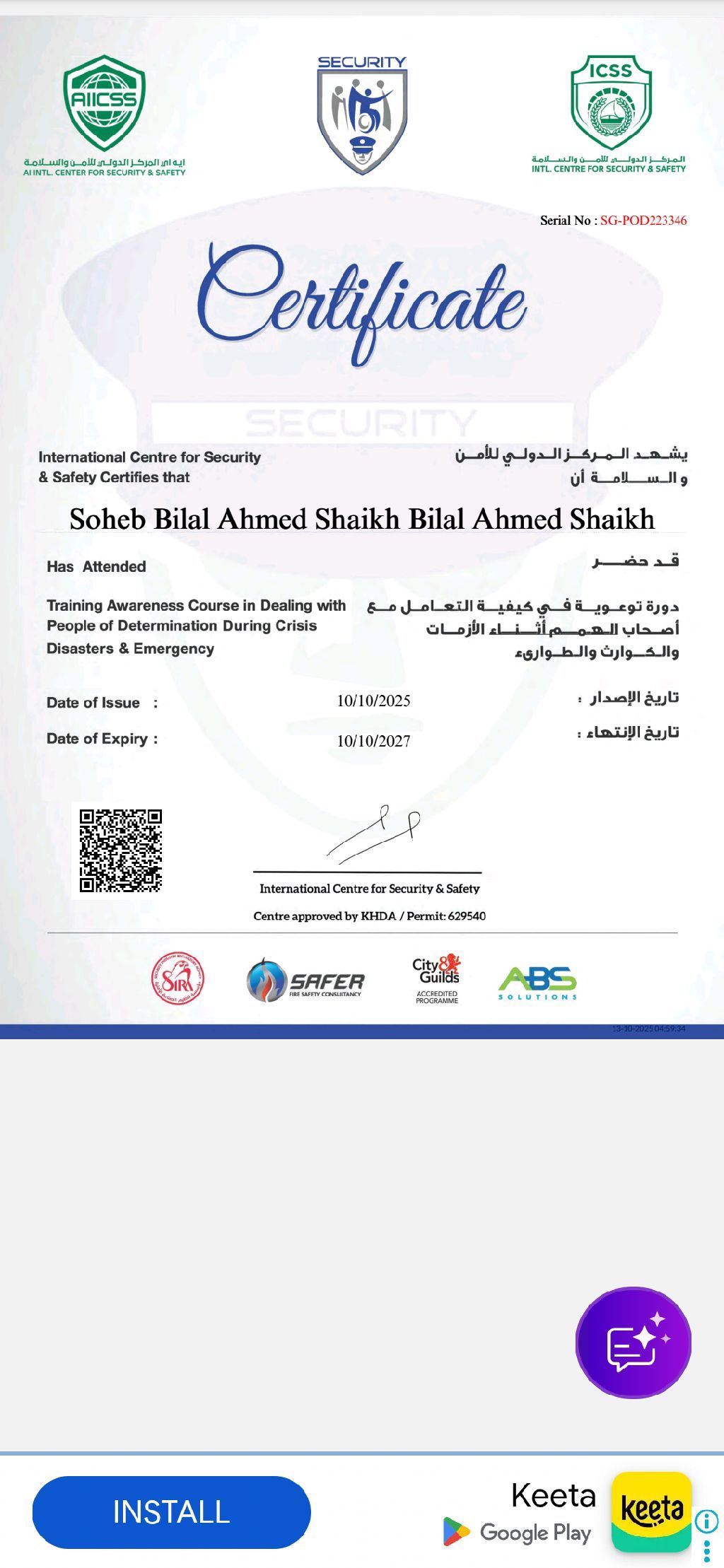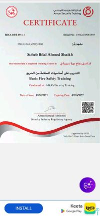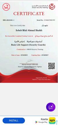 My name is shoeb shaikh I am looking for a job. I am located in Sharjah my nationality India and I have shera certificate for security guard. please there any vacancy let me know. contact my number below