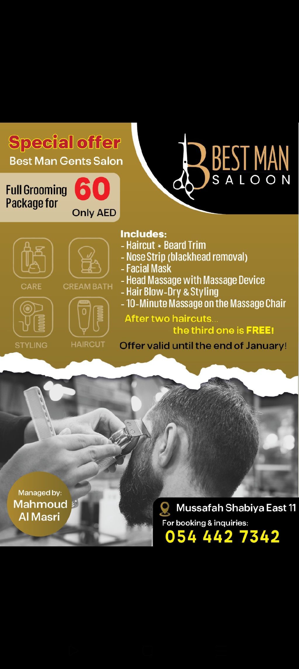 صالون بست مان للرجال مصفح شعبية شرق 11 أبو ظبي أقوى عروض أفضل الأسعار اصطف مصريين وسورين
