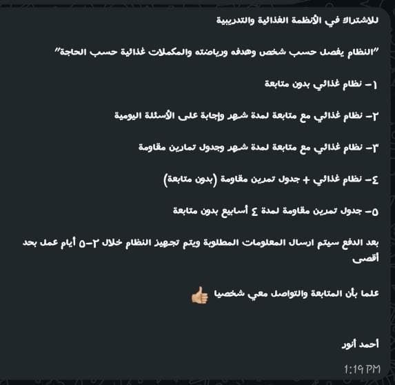 The plan is detailed according to your personal information, goal, sport, and supplements (if needed) 1 - Nutrition plan without follow - up. 2 - Nutrition plan with monthly follow - up and daily question answering 3 - Nutrition plan with monthly follow - up + resistance training schedule. 4 - Resistance training schedule for 4 weeks (without follow - up) After payment, the form to collect