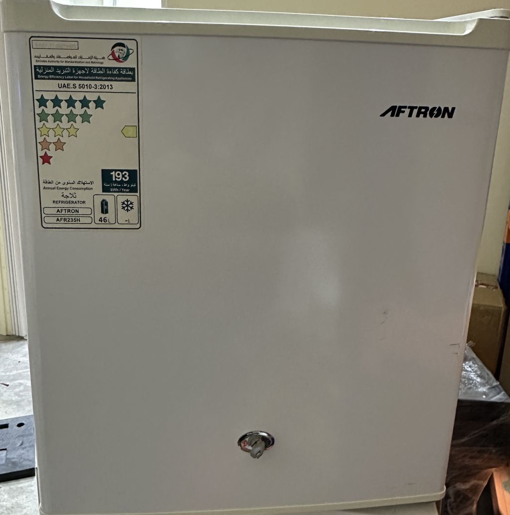 ثلاجة صغيرة أفترون مثل الجديدة نوعية حديثة اقتصادية تعمل بشكل ممتاز مع قفل باب للبيع 160 درهم في أبوظبي