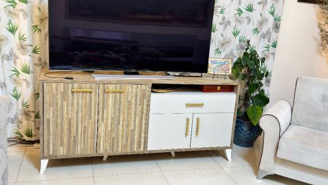 تلفزيون 65 بوصة كير فد سامسونج للبيع ممتاز وطاولة قهوة ذهبية خشب فخم للبيع جهاز رياضة للبيع