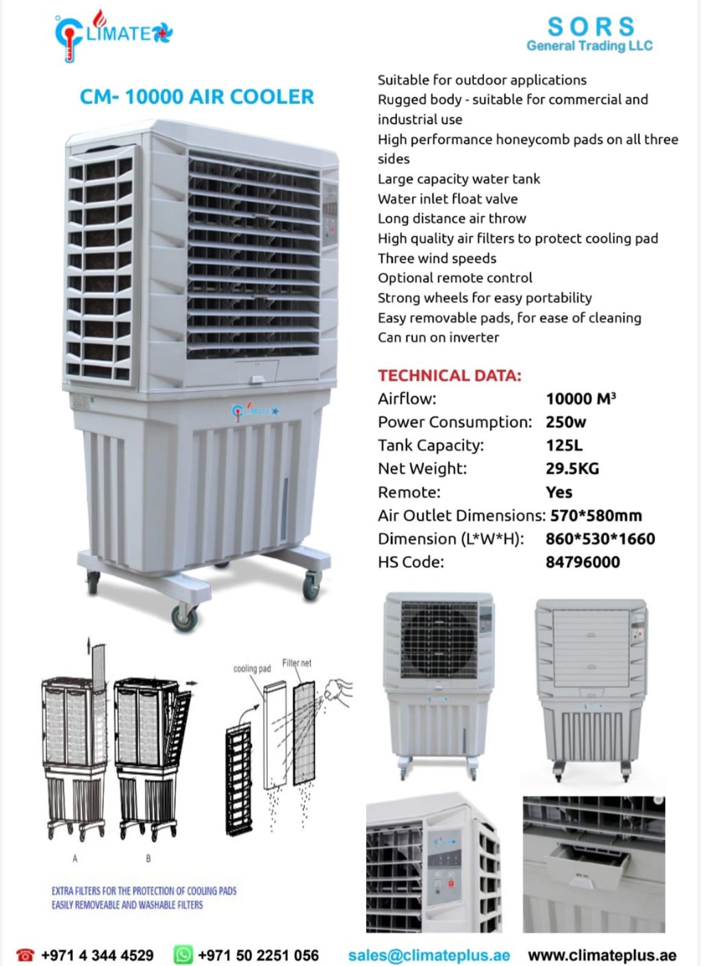 Jumbo Outdoor Air Cooler - Heavy - Duty Evaporative Cooling for UAE Weather Stay cool and comfortable with the CM - 10000 Jumbo, the ultimate outdoor air cooler designed to handle even the toughest UAE conditions. Built with a rugged, modern body and powerful performance, this cooler is perfect for patios, gardens, warehouses, workshops, or events. Key Features High Airflow Capacity Delivers