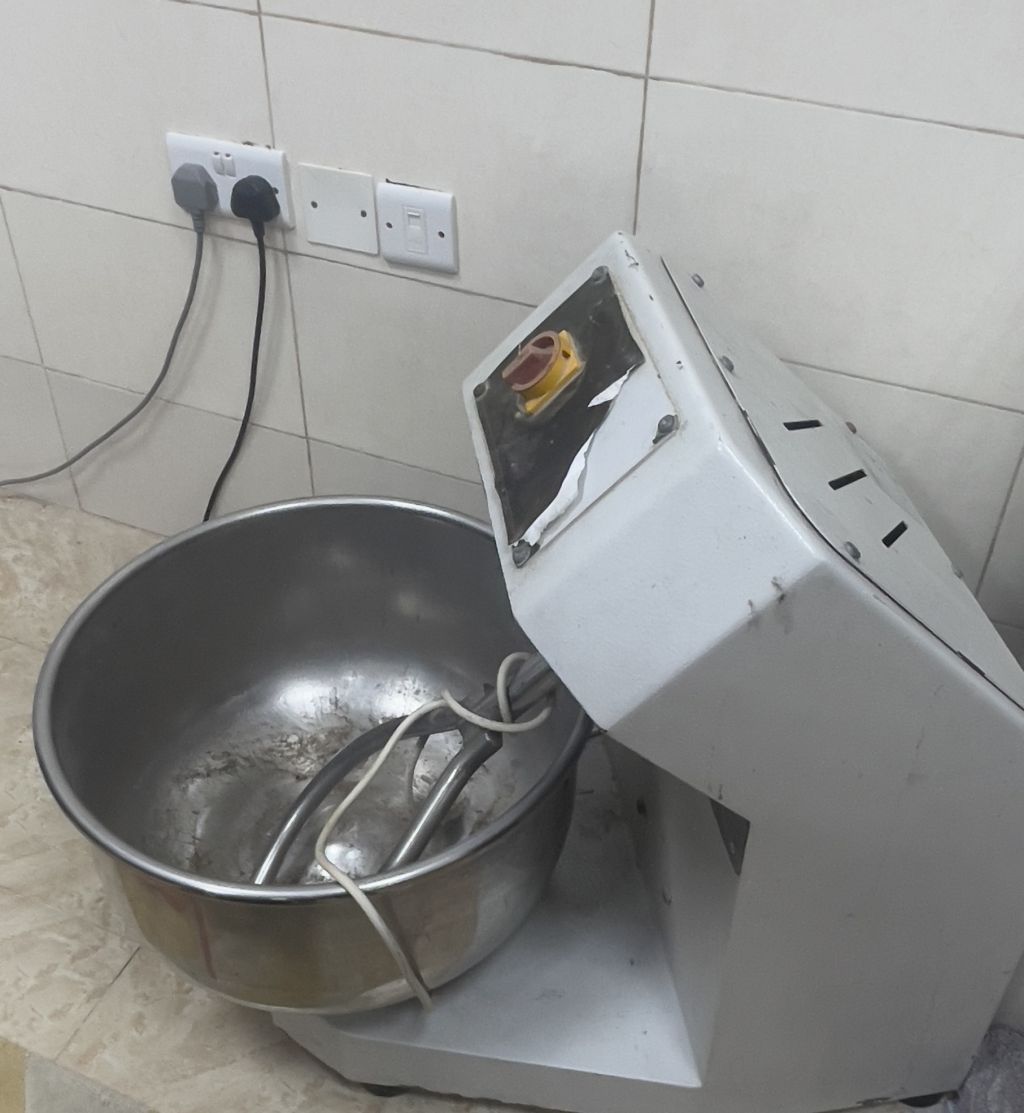 للبيع عجانة صناعية قوية الحالة تعمل ولا يوجد عيوب - السعة حوض ستانلس ستيل كبير (تقريبا 20 الى 25 لتر) نوع العجان خطاف حلزوني مثالي لعجن العجائن الثقيلة مثل الخبز والمعجنات - تعمل على كهرباء 220 فولت (منزلية) الهيكل حديد ثقيل ومتين، صناعة تجارية مناسبة للاستخدام اليومي - مزودة بزر تشغيل / ايقاف للطوارئ مثالية للمخابز، المطاعم، أو مشاريع العجين الكبيرة في المنزل