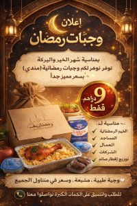 وجبات رمضان بمناسبة شهر الخير والبركة نوفر لكم وجبات رمضانية (مندي) بسعر مميز جدا الوجبة ب 9 دراهم فقط مناسبة ل الخيم الرمضانية المساجد العمال الشركات توزيع افطار صائم وجبة طيبة، مشبعة، وسعر في متناول الجميع أبوظبي
