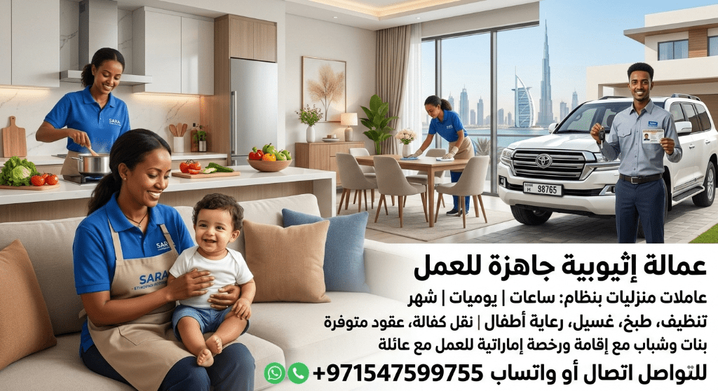 أنا سارة أثيوبيا أوفر عمالة أثيوبية جاهزة للعمل داخل الدولة عاملات منزليات بنظام الساعات أو اليوميات أو الشهر خبرة في التنظيف والطبخ والغسيل والكي ورعاية الاطفال يتوفر نقل كفالة كنترات بنات وشباب أثيوبيون مع إقامة ورخصة اماراتية للعمل مع عائلة