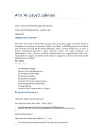 أرغب بالتقدم لوظيفة مساعد موارد بشرية حاصل على شهادتين في الموارد البشرية من كور سيرا وإدراك، واكتسبت من خلالهما خبرة في أساسيات التوظيف وإدارة الأداء وتنمية المهارات أتطلع لفرصة أكون فيها جزءا من فريقكم وأسهم في تحقيق أهداف الشركة
