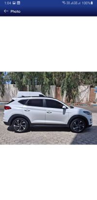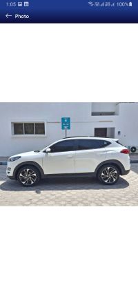 For sale: Hyundai Tucson 2019 model, white color, panoramic sunroof, steering wheel controls, cruise control, rear camera, Bluetooth, fingerprint start, remote start, normal driving mode, sport mode, fuel efficient, two original keys, no accidents, original paint, last agency inspection at 48,500 km, current mileage 50,000 km, comprehensive insurance for one year.