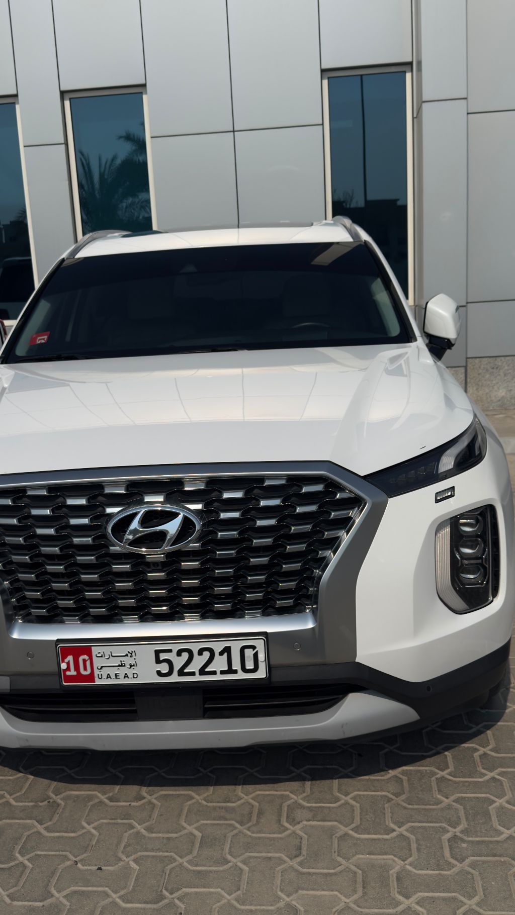 For sale: Hyundai Palisade 2022 - Full options - Excellent condition - 3.8L V6 engine - 4WD HTRAC - Pearl white color - Beige interior - Full options include push-button start, heated/cooled seats, auto hold, sensors, rear camera, driving modes - Two keys - Original seats - The car is very clean inside and out - Ready for inspection - Location: Abu Dhabi